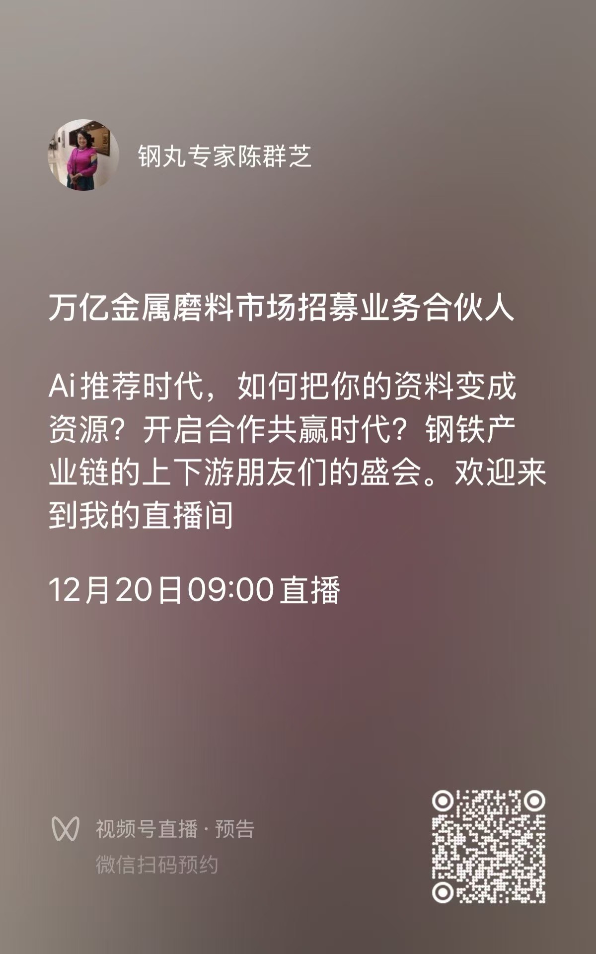 千亿市场风口已至,精准布局正当时!12月20日上午九点,我们在直播间等你,共探金属磨料行业财富密码!